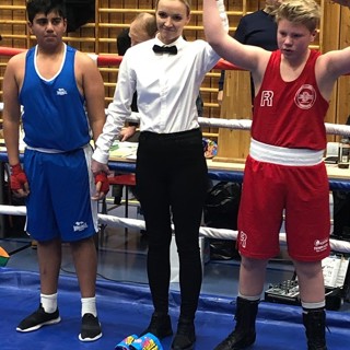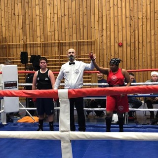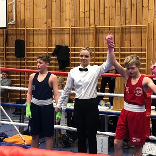 Coach Ole-Arne reiste med Sunniva Hofstad og Julie Holthe til Women's Winter Box Cup utenfor London. Dette er andre året det engelske bokseforbundet avholder dette flotte arrangementet, og det var nær 200 påmeldte. Begge våre jenter trakk direkte finaler på søndag, og begge klarte å stoppe sin motstander tidlig i kampen. Et par fine kroppslag før første pause gjorde at Sunnivas motstander Stephanie Horrocks fra Tameside Elite Boxing Academy ikke kom ut av hjørnet for å starte andre runde, men valgte å avbryte kampen. Julie fulgte opp, og klarte å holde Tori Creighton fra TTW Golden Girls på avstand og bruke rekkevidden sin og prikke inn den ene trefferen etter den andre. Det ble en telling i første runde, og to tellinger i andre før dommeren stanset kampen! Vill jubel i trønder-leiren for TO GULL :-)