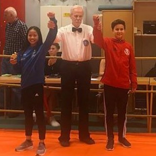 Hanan Kadir (13) møtte Frida Göransson (BK Älgen). Hanan fyker ut av startblokken og bokser en fantastisk kamp som om hun aldri har gjort annet. Full av selvtillit og "kule moves" ender det med en klar seier til unge Hanan, 26-23. Det skal bli utrolig gøy å følge denne jenta videre!